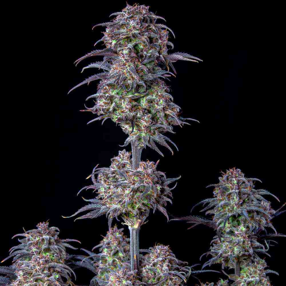 Dank der hochwertigen Indica-Genetik wächst diese Sorte kompakt und buschig, während sie wunderschön frostige Blüten hervorbringt. Unter den richtigen Bedingungen entwickeln die Blüten einzigartige violette, schwarze und blaue Farbtöne, was sie zu einer unverzichtbaren Wahl für alle Züchter macht, die klassische Sorten ohne zusätzlichen Aufwand anbauen möchten. Diese Pflanze überzeugt sowohl in Größe als auch im Ertrag: Sie erreicht eine Höhe von 75–110 cm und bildet von unten bis oben an allen Zweigen Blüten aus, die in nur 65 Tagen ab Keimung geerntet werden können. Sie liefert bis zu 500 g/m² aromatischer Blüten mit einer köstlichen Mischung aus Terpenen und ist ein Muss für Liebhaber starker Indica-Wirkungen und herrlich fruchtiger Aromen.